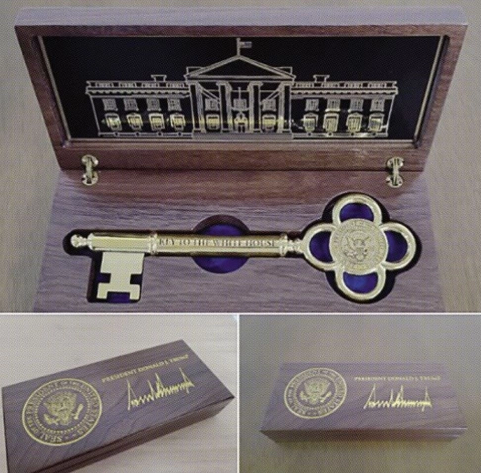강훈식 대통령실 비서실장은 24일 도널드 트럼프 미국 대통령이 지난 16일 강경화 주미대사와의 환담 자리에서 이재명 대통령에게 각별한 안부와 함께 백악관 황금 열쇠를 전했다고 밝혔다. 강 실장은 대통령 문장(紋章)과 함께 ‘백악관 열쇠’(KEY TO THE WHITE HOUSE)라는 문구가 각인된 황금 열쇠는 5개만 제작됐으며, 이 대통령이 그중 마지막 하나를 받았다고 전했다. 사진은 강 실장이 소셜미디어(SNS)에 공개한 백악관 황금 열쇠의 모습. 강훈식 대통령실 비서실장 페이스북 캡처