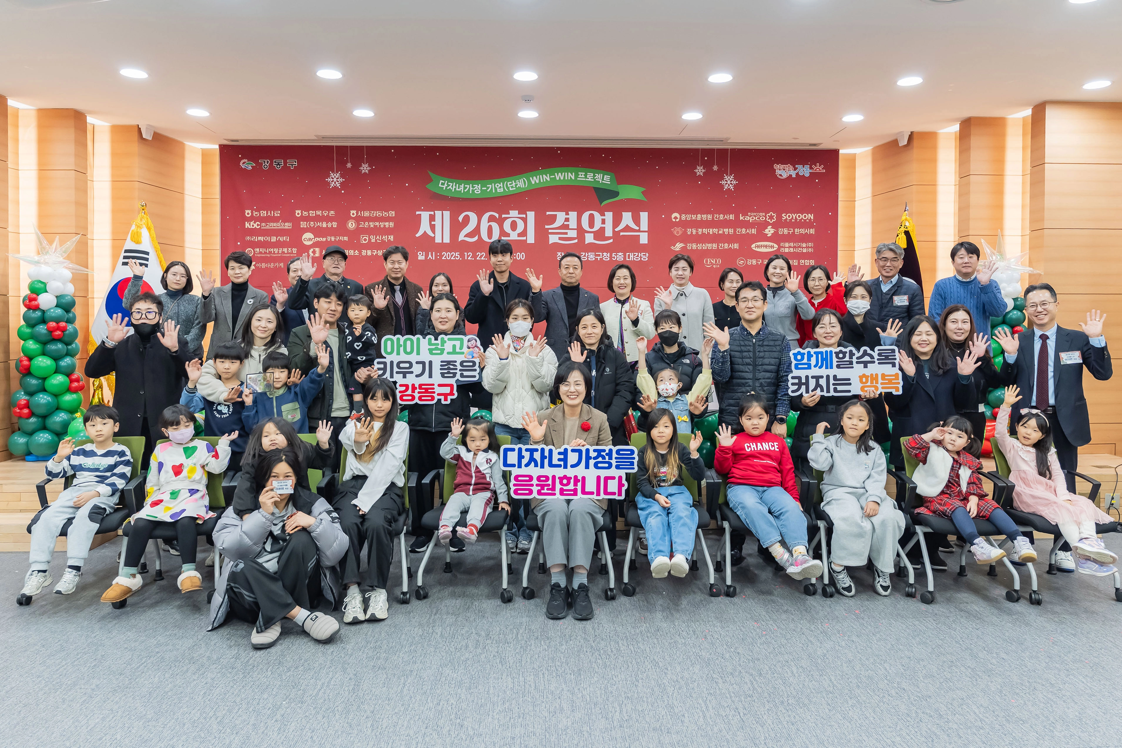 서울 강동구는 지역 기업과 단체가 다자녀 가정에 양육비를 지원하는 ‘다자녀 가정-기업(단체) 윈윈 프로젝트’ 제26회 결연식을 개최했다고 24일 밝혔다.