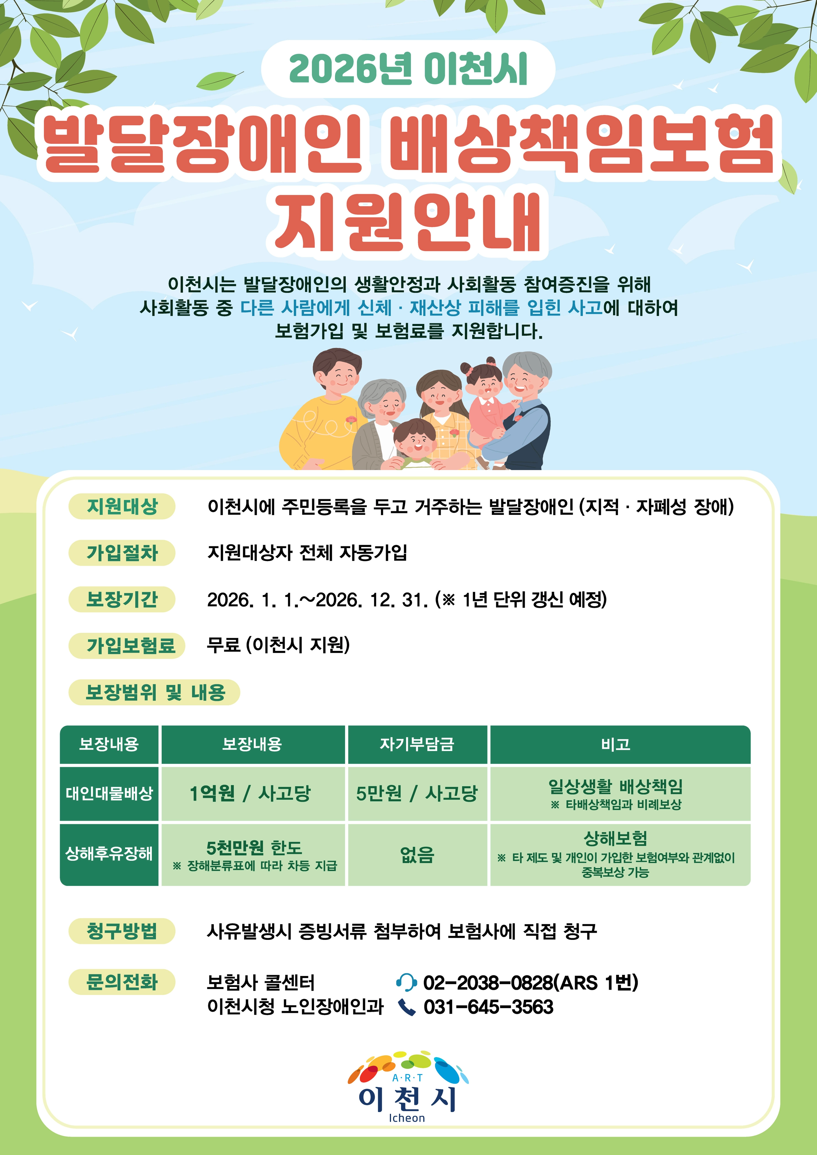경기 이천시는 2026년 1월 1일부터 경기도 최초로 발달장애인을 위한 배상책임보험 가입 지원을 시행한다고 30일 밝혔다.