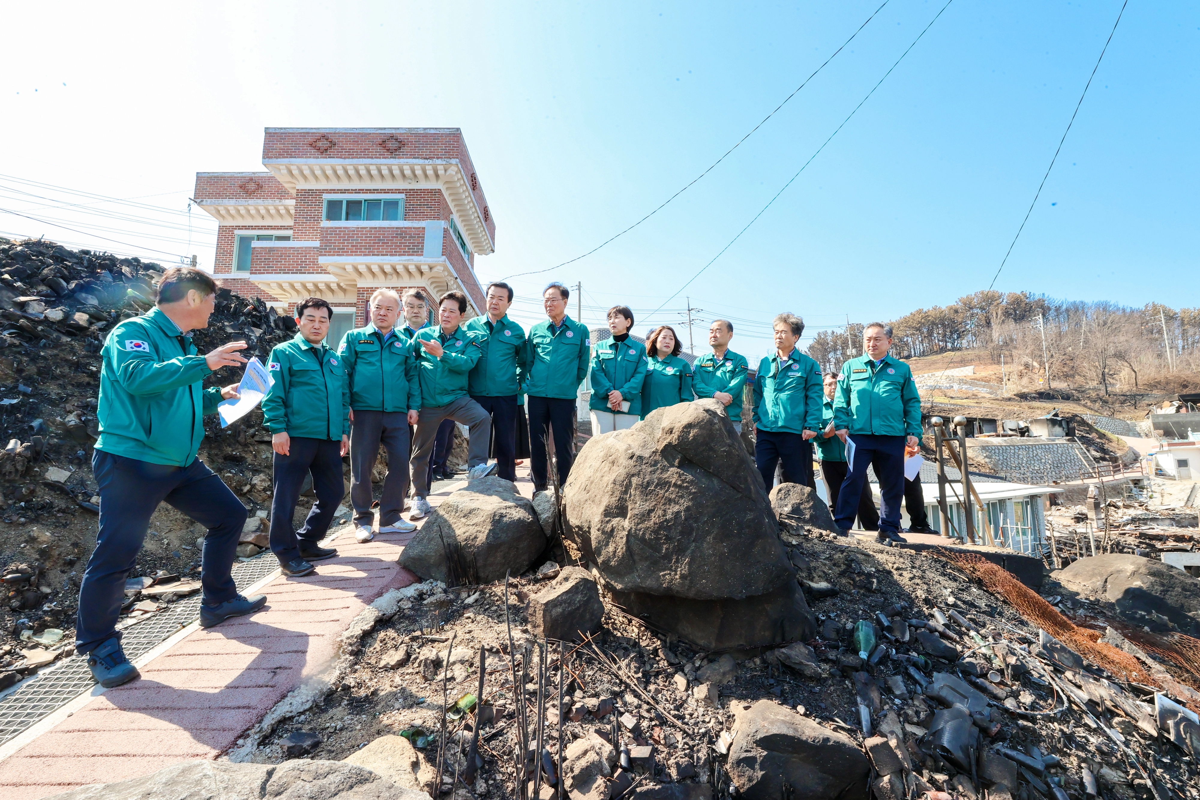 경북도의회는 3월 23일 오전 10시 의성 산불 피해 현장을 긴급 방문하여 진화 관계자들을 격려하고 산불로 인해 긴급히 대피한 주민들의 건강 상태와 불편사항을 직접 살피며 애로사항을 청취하고, 피해 복구 지원에 최선을 다할 것임을 밝히며 주민들을 위로했다.