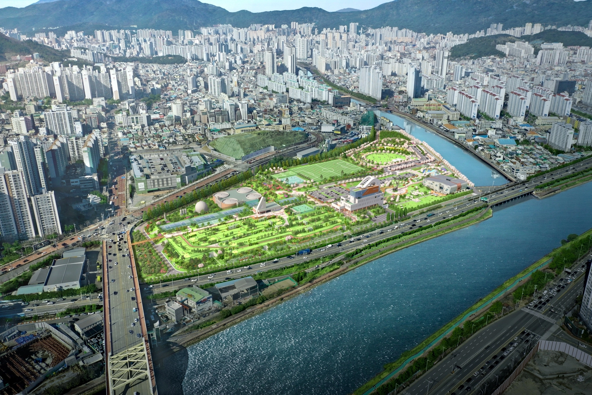 이 사업은 부산 동래구에 위치한 기존 공공하수처리시설의 유입농도 증가와 노후화로 성능 저하가 발생하면서 이를 현대화하는 것으로, 기존 시설을 지하화하고 지상에 생활체육시설, 문화공간 등을 조성한다.