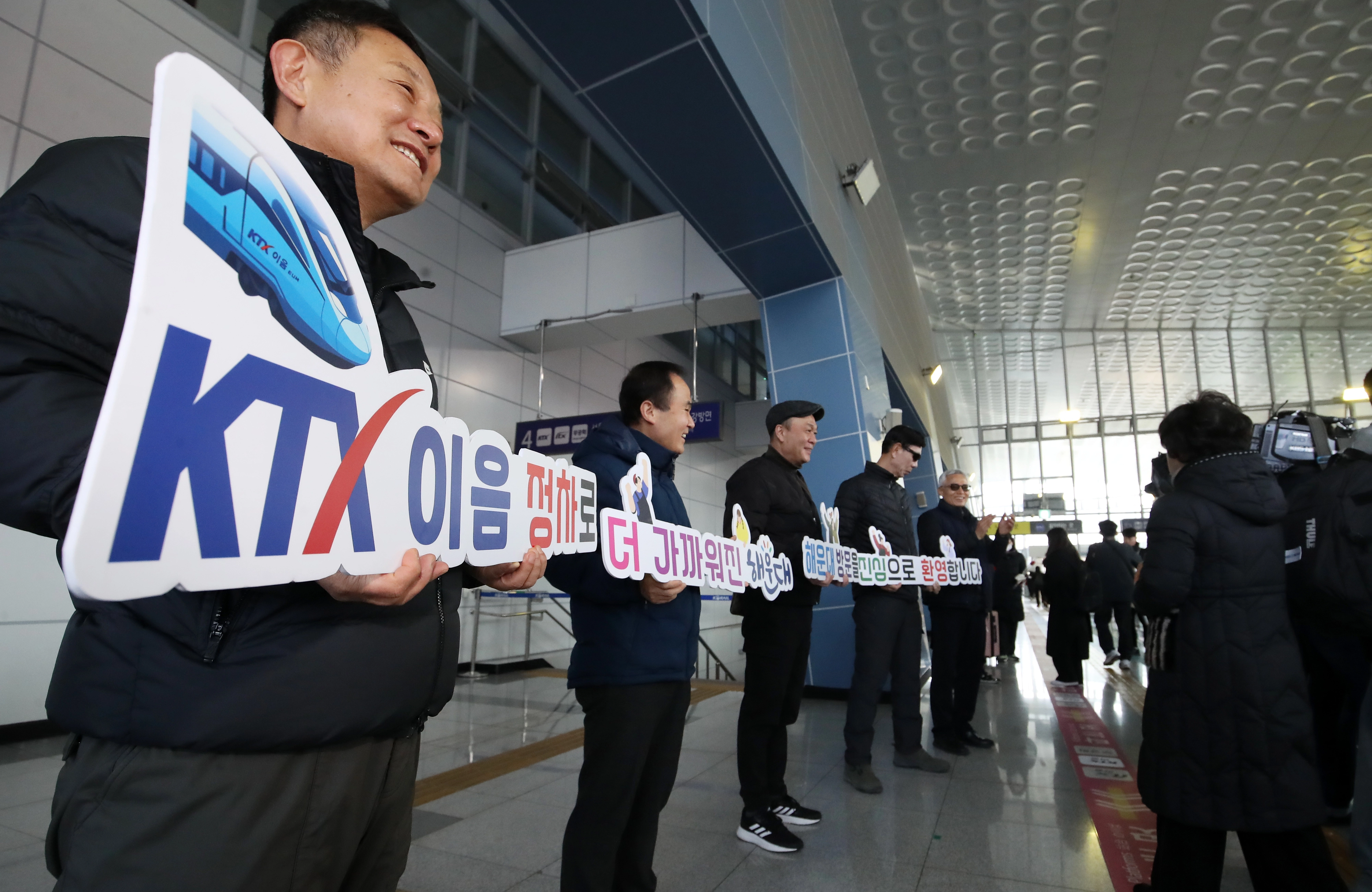 30일 부산 신해운대역에서 해운대구 주민들이 중앙선 KTX-이음 열차로 도착한 승객들을 맞이하고 있다. 신해운대역은 이날부터 서울 청량리역과 부산 부전역을 잇는 중앙선 KTX-이음 열차의 신규 정차역으로 지정됐다. 이 구간 운행도 하루 6회에서 주중 16회, 주말 18회로 늘어났다.