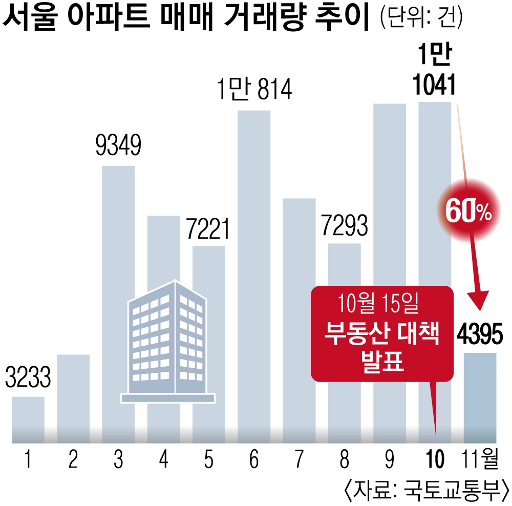 10·15대책 이후 서울 아파트 거래량은 전월 대비 몇 % 감소했는가?