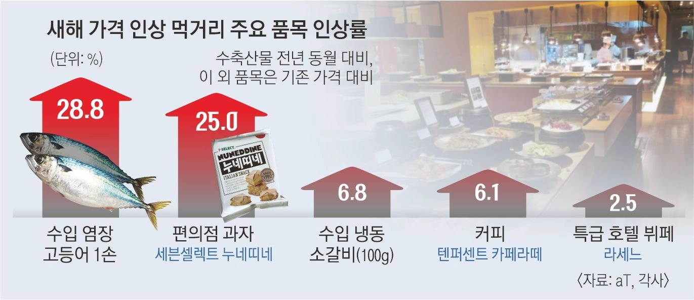 지난해부터 계속된 고환율 및 원재료 가격 상승 등으로 새해 첫날부터 먹거리 가격 인상 소식이 곳곳에서 이어졌다. 국산 및 수입 식품 가격, 식재료 및 외식 물가 등이 동반 상승해 서민의 생계비 부담은 더욱 커질 전망이다.