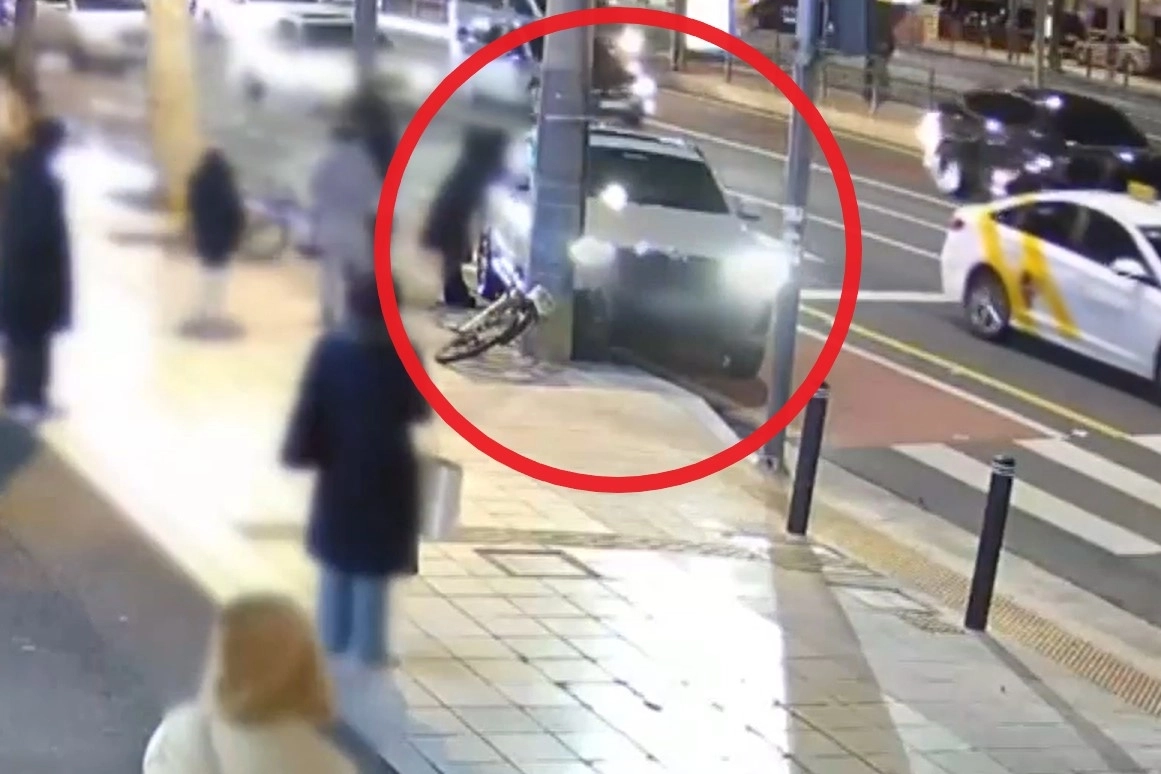 MBN이 전날 보도한 당시 사고 영상에는 회색 차량 한 대가 도로를 따라 느린 속도로 주행하다 차선을 바꿔 인도 쪽으로 다가가더니 인도에 세워져 있던 자전거 2대와 전봇대를 들이받고 멈춰서는 모습이 담겼다.