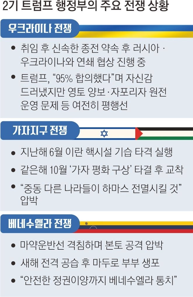 니콜라스 마두로 정권을 붕괴시킨 도널드 트럼프 미국 대통령은 3일(현지시간) 자국의 에너지 기업들이 베네수엘라에 진출해 원유 생산을 확대하겠다고 밝혀 이번 작전 단행 주된 이유 중 하나가 원유에 있음을 감추지 않았다. 서반구에서 미국의 배타적 지배권을 다시 확보하는 이른바 ‘돈로주의’(도널드와 먼로주의 합성어)를 구현하고, 중국과 러시아 등에 힘을 과시하기 위해 베네수엘라를 본보기 삼았다는 분석도 있다. 올해 말 중간선거를 앞두고 화려한 군사작전 성공으로 떨어진 지지율을 회복하려는 정치적 판단이 깔렸다는 관측도 나온다.