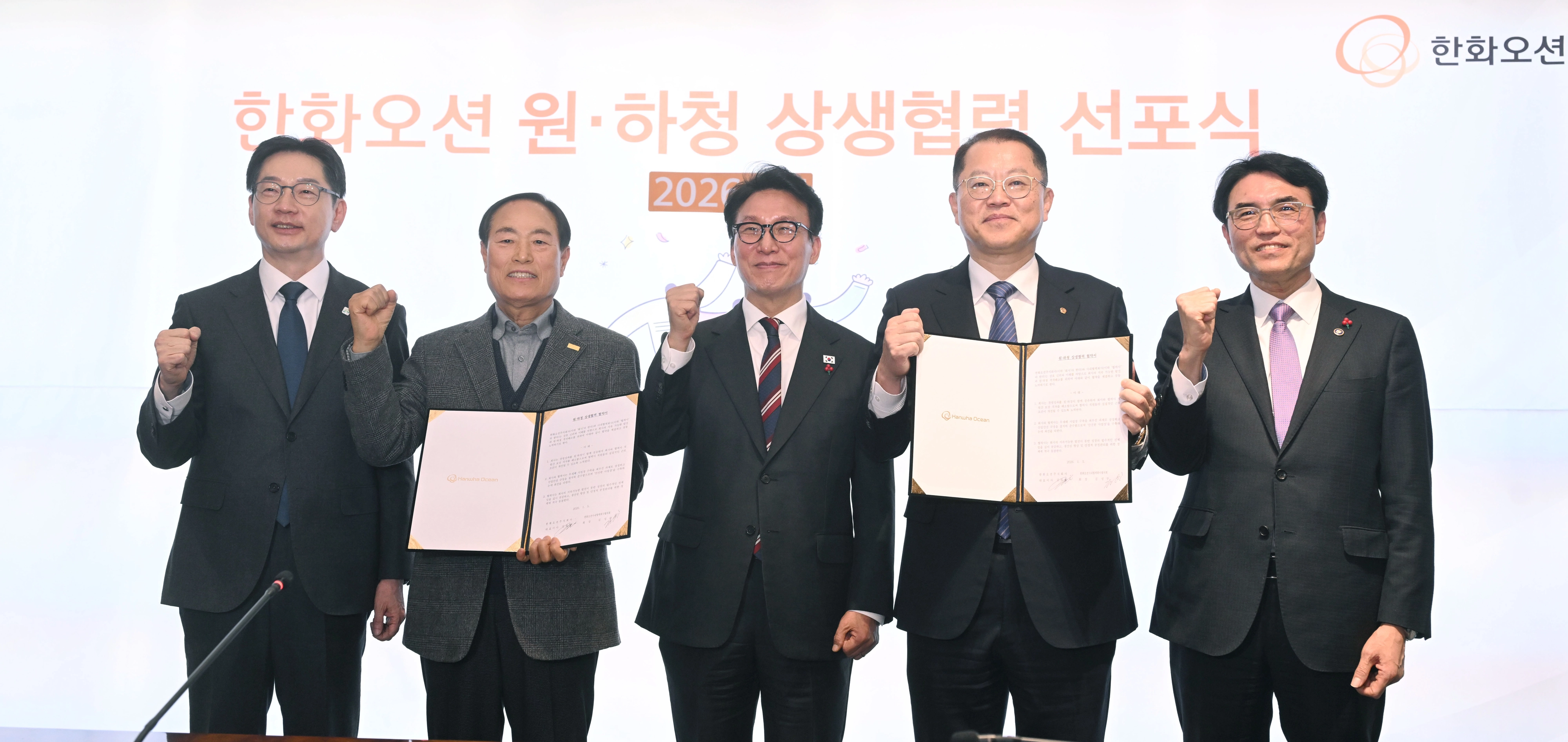 한화오션은 이날 서울 중구 한화오션 서울사무소에서 ‘원·하청 상생협력 협약식’을 열고 사내 협력사들과 함께 상생협력 기반을 구축하는 협약서에 서명했다. 협약서에는 ‘경영 성과를 원·하청 차별 없이 함께 공유하며 직원 간 보상 격차를 해소해 협력사 직원들의 실질적 근로조건이 개선될 수 있도록 노력한다’는 내용이 담겼다. 또 ‘회사와 협력사가 생산성 향상 및 안정적 공정관리를 위한 정책에 적극 동참한다’는 내용도 포함됐다. 김희철 한화오션 대표는 “한화오션과 협력사는 하나의 가치사슬로 이어진 공동체”라며 “원·하청 상생이 국내 제조업 경쟁력을 만드는 핵심 가치”라고 강조했다.