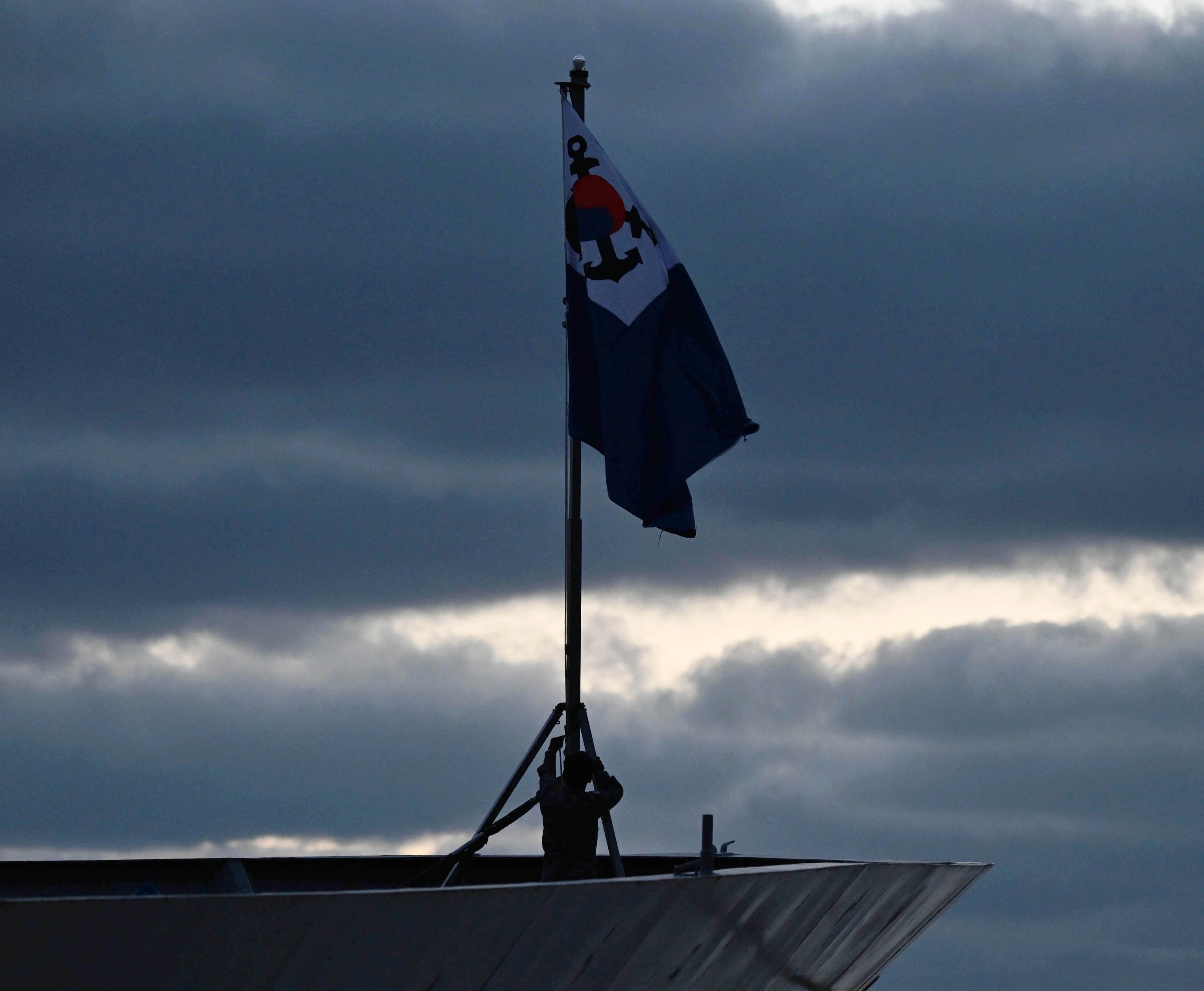 제주 해군기지에서 한 장병이 해군 깃발을 올리고 있습니다. 새해가 밝아도 군인들의 하루는 크게 달라지지 않습니다. 보이지 않는 자리에서 맡은 임무를 묵묵히 이어 가는 장병들에게 감사의 마음을 전합니다.