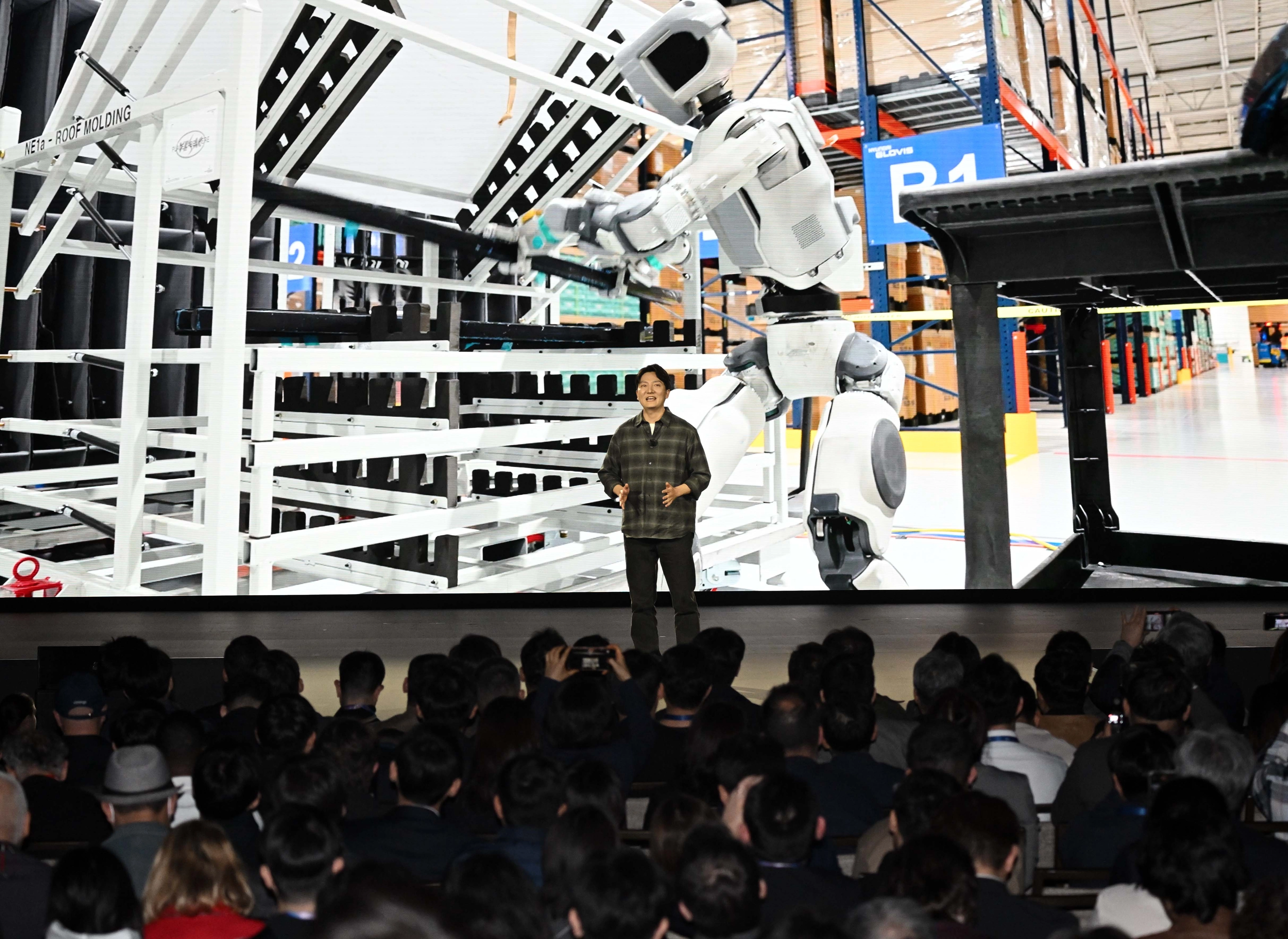 세계 최대 가전·정보기술(IT) 전시회 ‘CES 2026’ 개막을 하루 앞둔 5일(현지시간) 미국 네바다주 라스베이거스 만달레이베이에서 열린 현대차그룹 프레스 컨퍼런스에서 우승현 현대차그룹 GSO 미래전략담당 팀장이 기조연설하고 있다. 현대차를 비롯해 많은 국내외 기업들이 다양한 기능의 피지컬 AI를 선보이면서 올해가 피지컬 AI 상용화의 원년이 되 것이라는 기대가 커졌다. 라스베이거스 연합뉴스