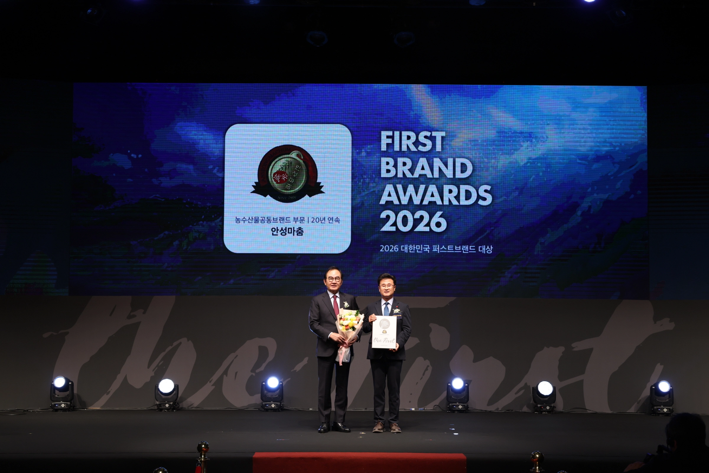 경기 안성시가 6일 열린 한국소비자포럼 주관 ‘2026년 대한민국 퍼스트브랜드 대상’에서 농특산물 브랜드 ‘안성마춤’이 농수산물 공동브랜드 부문 대상을 받았다. 20년 연속 선정으로 ‘퍼스트클래스’ 특별 대상도 수상했다.