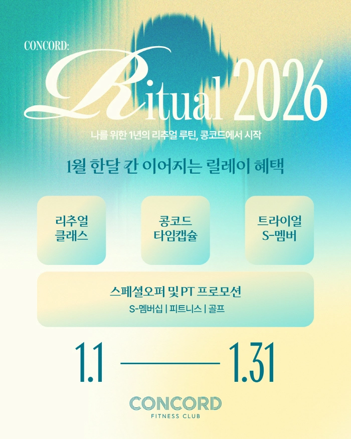 콩코드 관계자는 “새해를 맞아 몸과 마음의 균형을 되찾고 자신만의 웰니스 루틴을 시작할 수 있도록 이번 프로모션을 기획했다”며 “콩코드에서 나를 위한 의미 있는 1년의 리추얼을 시작하시길 바란다”고 전했다.