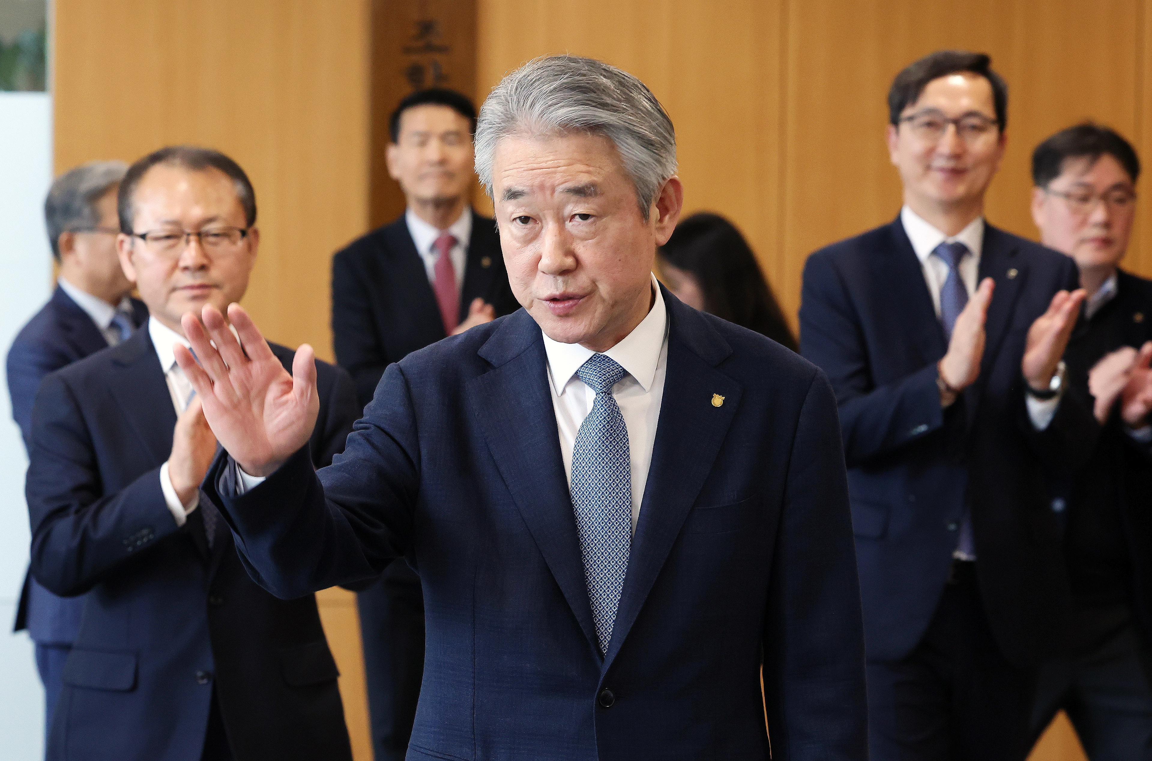 강호동 농협중앙회장이 지난해 12월 29일 서울 중구 농협 본관에서 열린 제4회 동시조합장선거 선거관리사무국 현판식을 마친 뒤 이동하고 있다. 2025. 12. 29. 뉴시스