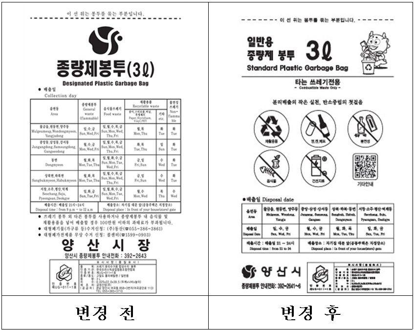 경남 양산시가 쓰레기 종량제 시행 이후 큰 변화 없이 유지해 온 종량제 봉투 디자인을 시민 편의 중심으로 전면 개편한다.