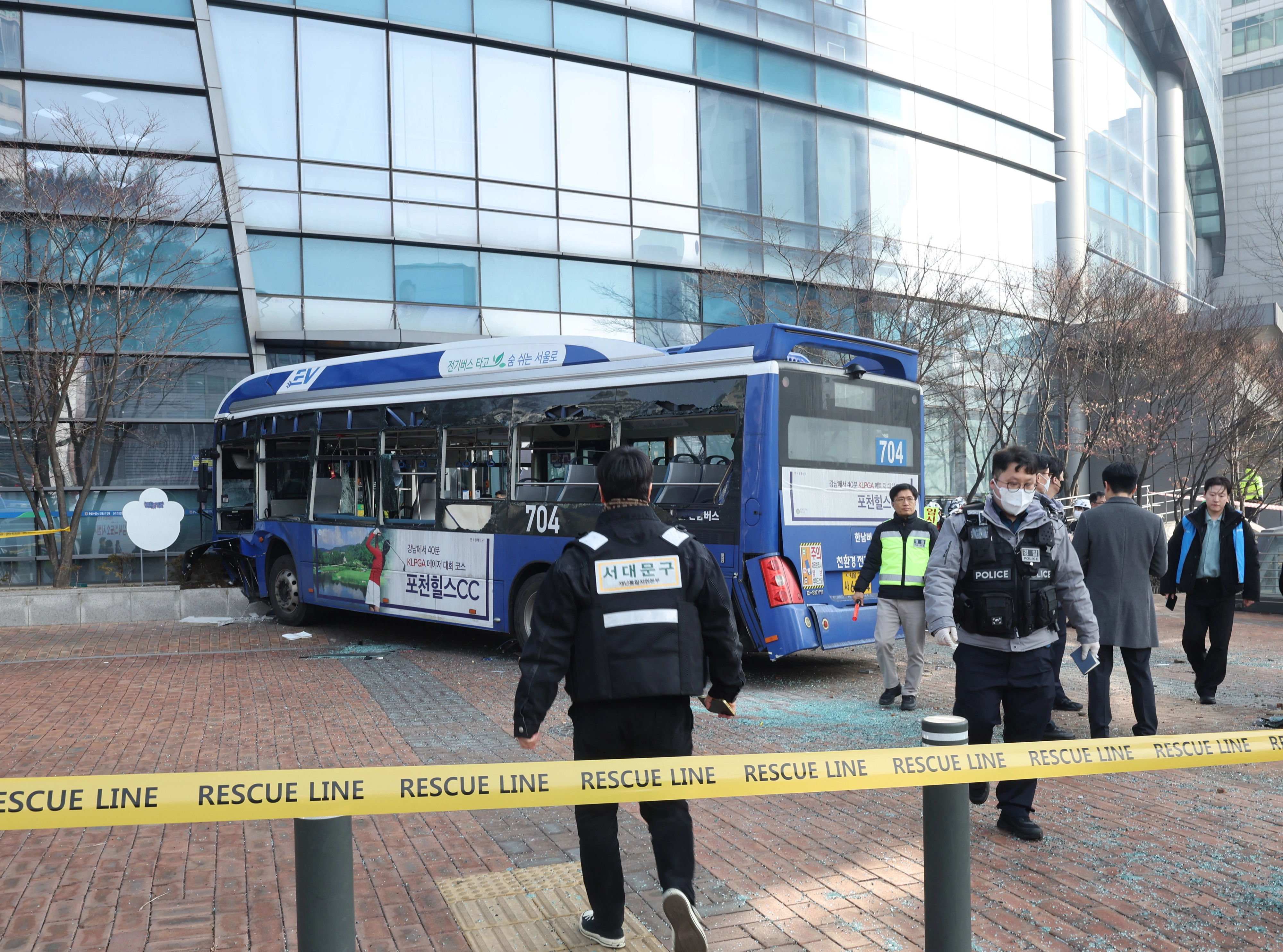 서울 서대문역 사거리서 버스 돌진 16일 서울 서대문역 사거리에서 버스가 인도로 돌진 뒤 건물에 충돌해 있다. 2026.1.16 연합뉴스