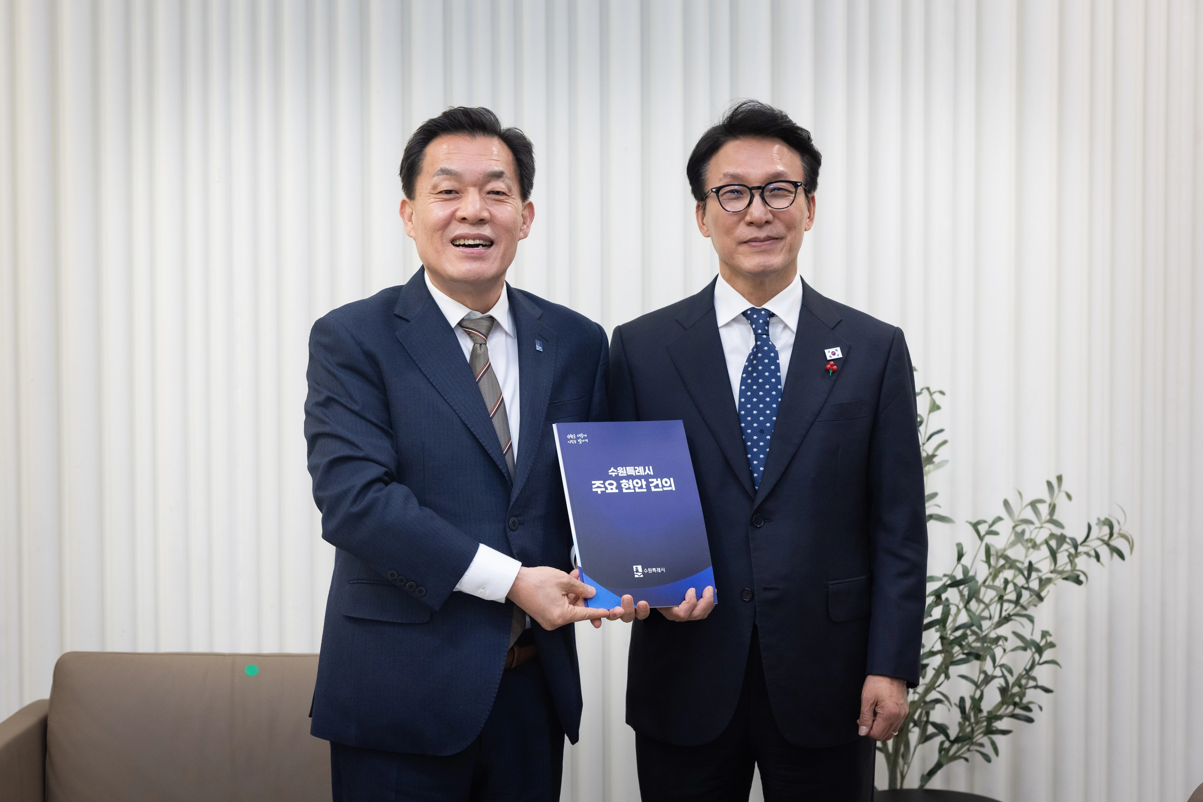이재준 수원특례시장이 김민석 국무총리에게 군공항 이전과 경제자유구역 지정 등 수원의 현안 사업에 대한 정부 차원의 지원을 건의했다.