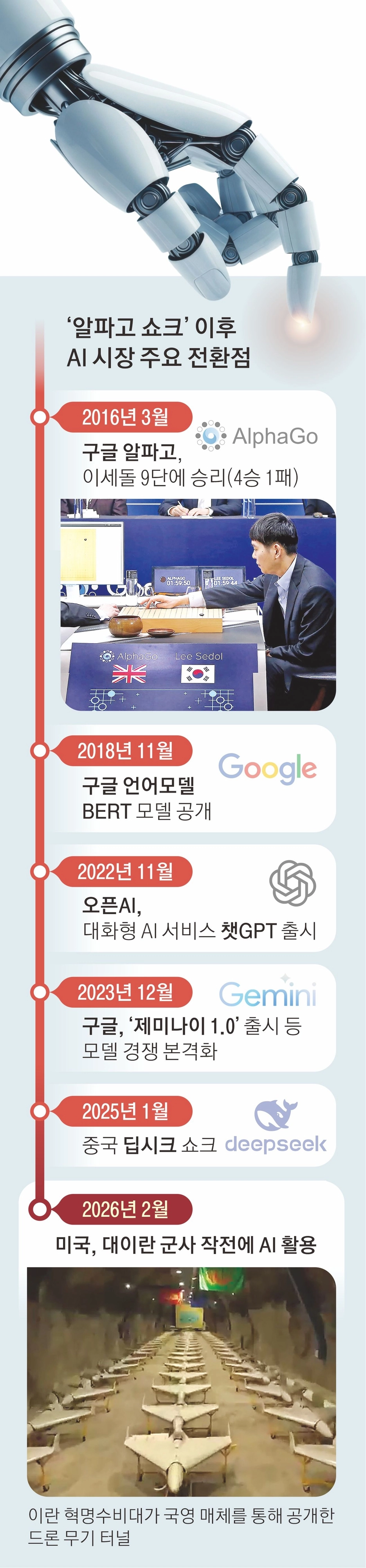 2016년 3월 구글 딥마인드의 인공지능(AI) ‘알파고’가 이세돌 9단을 꺾었을 때 인류는 놀라움과 함께 두려움을 느꼈다. 그로부터 10년이 지난 지금 AI는 로봇 등 각종 기기와 결합하면서 인류가 개발한 가장 편리하고 유능한 도구가 됐지만 동시에 통제 불능에 대한 우려도 커졌다. 특히 이란 사태에서 AI 기반의 정보처리와 저가 무인체계의 결합은 게임체인저로 부상했고 산업·안보·일자리·국가 질서까지 AI가 정보 처리를 넘어 의사 결정마저 주도하는 것 아니냐는 두려움을 안겼다.