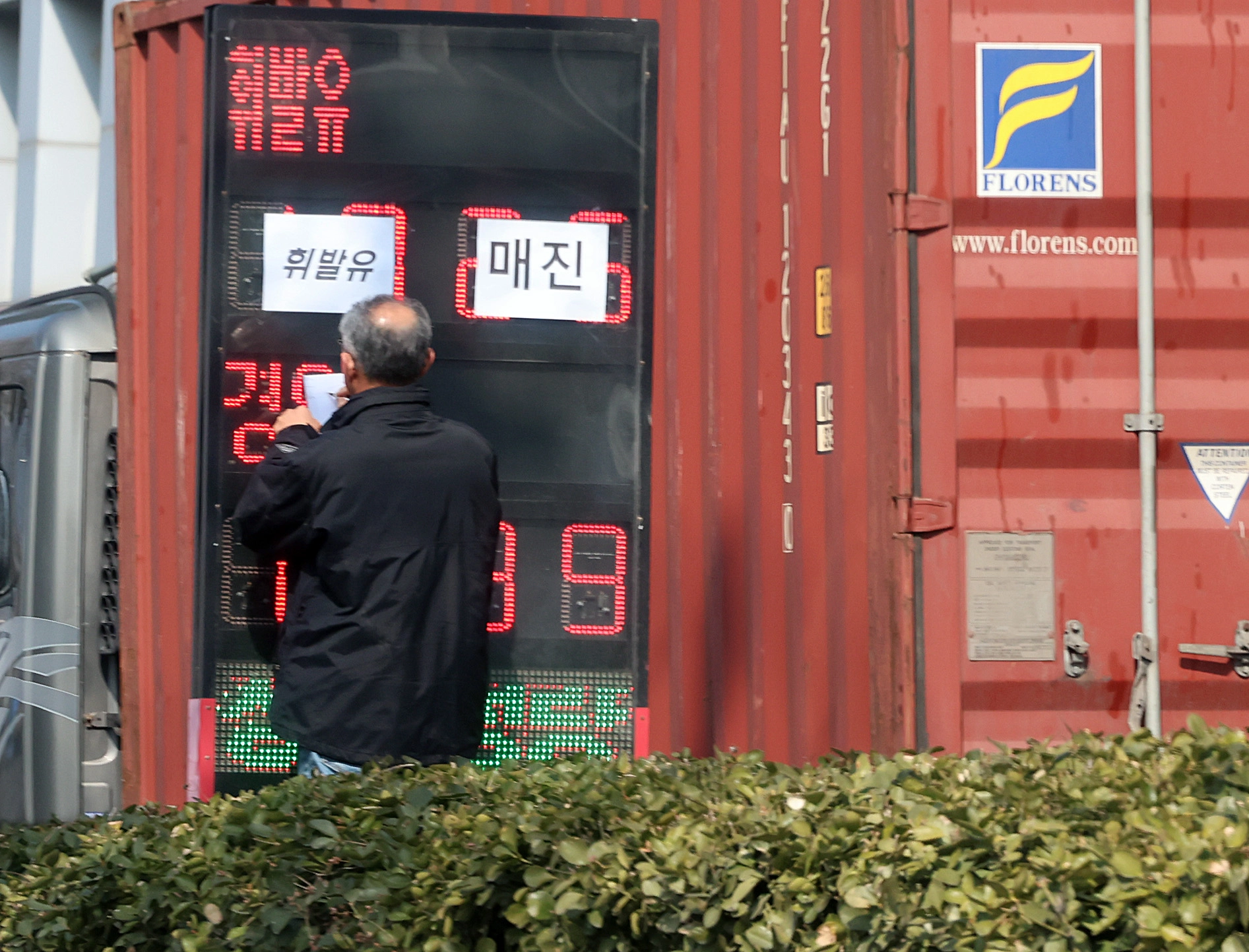 미국·이스라엘과 이란 간 전쟁 영향으로 유가가 치솟는 가운데 9일 인천 중구의 한 주유소 가격 안내 전광판에 휘발유 매진을 알리는 안내문이 붙어 있다. 뉴시스