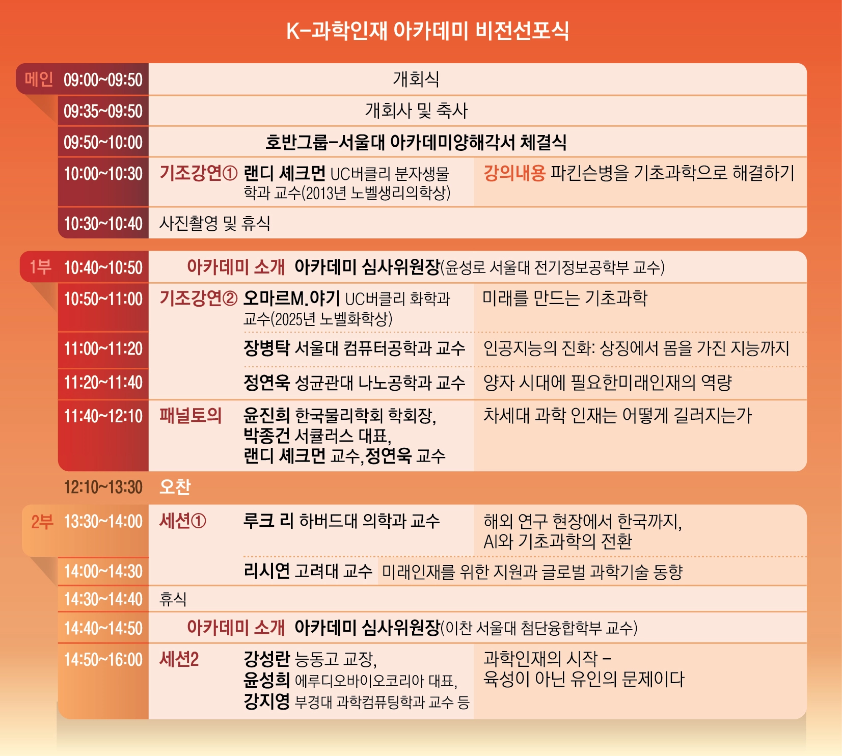 이번 행사는 국가적 난제로 떠오른 이공계 기피와 의대 쏠림 현상을 극복하고 정부의 과학기술 인재 육성 정책에 발맞춘 대안을 모색하기 위해 마련됐다. 2013년 노벨 생리의학상 수상자인 랜디 셰크먼 캘리포니아대 버클리 분자생물학과 교수와 2025년 노벨 화학상 수상자인 오마르 M 야기 캘리포니아대 버클리 화학과 교수 등 국내외 석학들이 기조강연 등을 통해 과학기술 인재 양성의 방향을 제시한다.