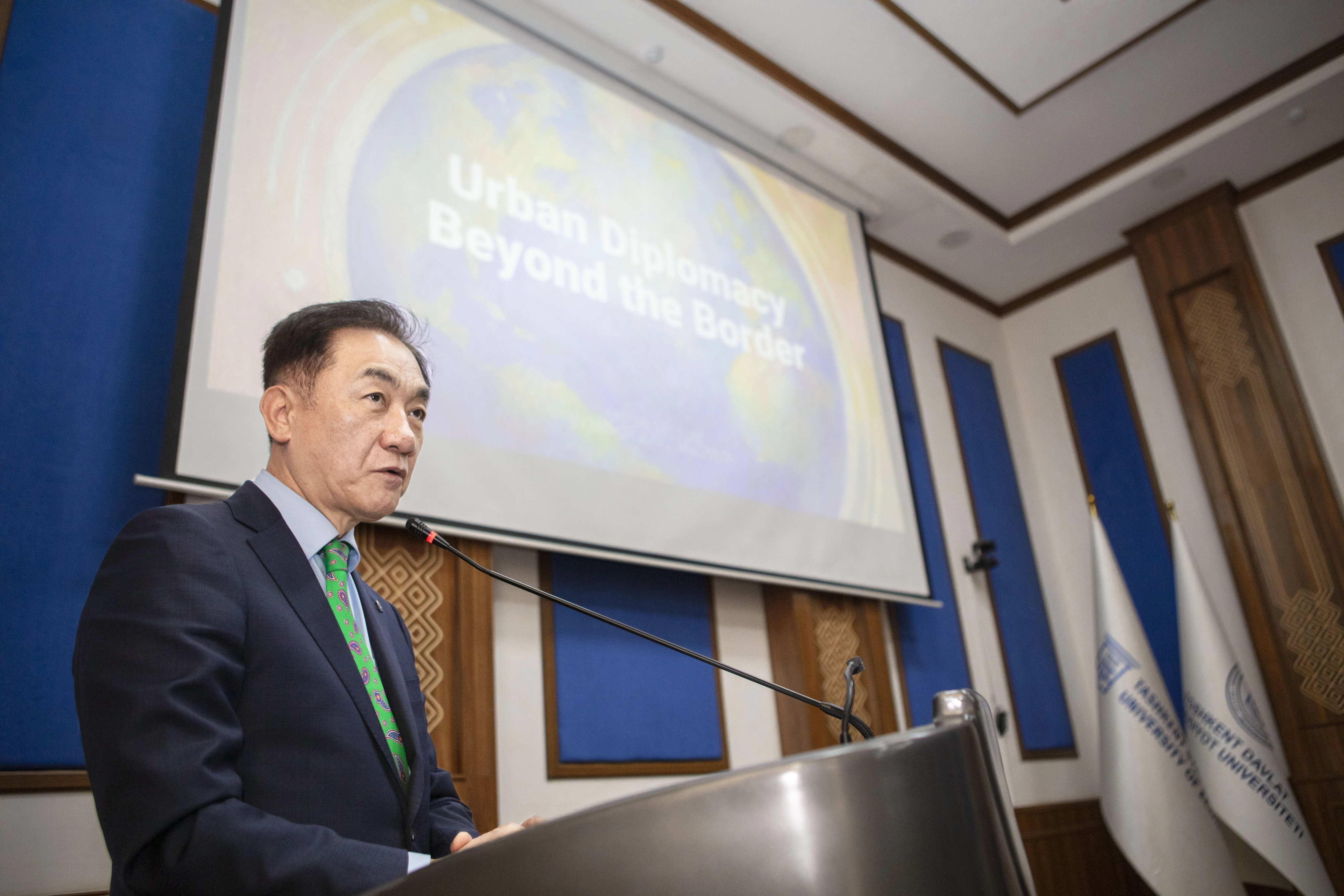 타슈켄트 국립경제대학교에서 특별 강연에 나선 정 시장은 “우즈베키스탄을 대표하는 대학교에서 명예교수로 임명돼 매우 자랑스럽다”면서 “앞으로도 책임감을 갖고 도시와 도시, 국가와 국가를 잇는 다리 역할을 충실히 수행하겠다”라고 밝혔다.