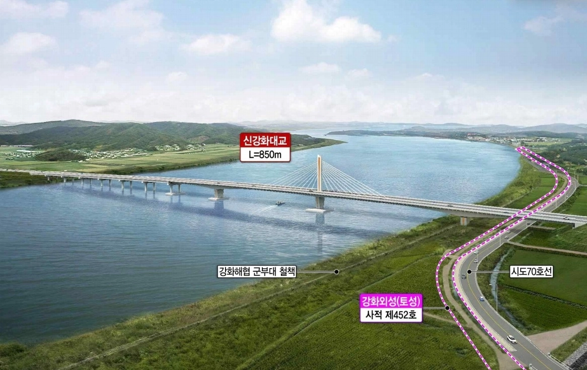 가장 먼저 공사 계약이 체결된 7공구는 경기 김포시 월곶면과 강화군 선원면을 잇는 4.6㎞로, 강화해협을 횡단하는 교량(사장교 850m)이 포함돼 있다.