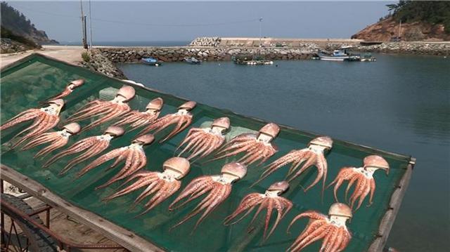 여수의 문어 생산량은 연중 750t. 제주도와 여수 가운데 자리한 초도는 말린 피문어로 유명하다. 초도에선 가을이면 집집마다 햇볕에 바짝 말린 피문어로 넓은 앞마당이 채워지곤 한다. 초도 예미마을에서 50년째 참문어 잡이를 하는 김형대씨 집에서도 피문어 말리는 작업이 한창이다. 말린 피문어는 초도 사람들에게 없어서는 안 될 귀한 재료로 육지에 비싼 가격에 팔리는 고마운 존재다.