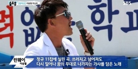 이어 이승철은 학교 운동장 한 가운데에서 자신의 정규 11집에 실린 ‘런웨이’를 열창했다. ‘런웨이’는 삶의 용기를 잃은 사람들에게 용기를 주고 싶어 만들어진 곡으로, 성지고 합창단은 ‘런웨이‘를 부를 예정이다.이승철의 열창에도 불구하고 대부분의 아이들은 무관심한 반응을 보였고, 특히 일부 학생은 “노래 생각보다 못한다”고 말해 이승철에게 굴욕을 안겼다.