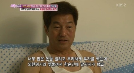 26일 방송된 KBS2 ‘여유만만’에서 한지일은 현재 자신의 미국 생활을 공개했다. 1970~80년대 미남배우로 왕성한 활동을 했던 한지일은 배우 활동과 에로 영화 제작으로 모은 재산 100억 여원을 탕진한 것으로 알려졌다.