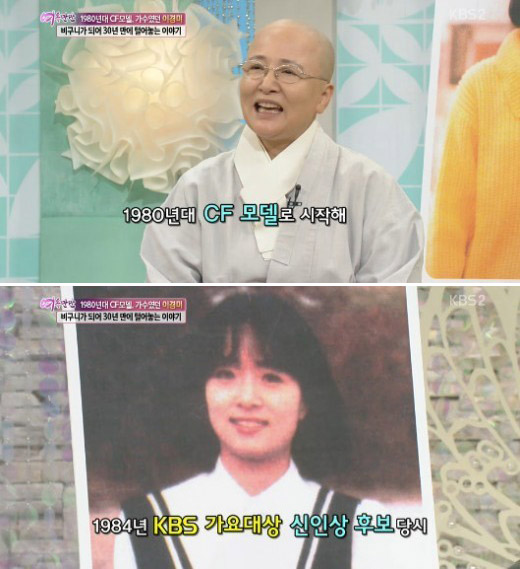 22일 방송된 KBS2 ‘여유만만’에는 스님이 되어 돌아온 1980년대 스타 이경미가 출연했다. 이경미는 ‘보현’이라는 법명을 받았다.