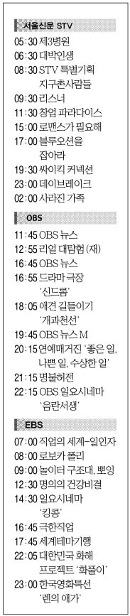 [1일(日) 서울신문 STV·OBS·EBS]