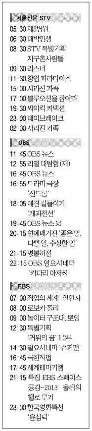 방송 [8일(日) 서울신문 STV·OBS·EBS] 입력 2013 12 07 00:00 수정 2013 12 07 00:00 기사 소리로 듣기 다시듣기 ⓒ 트윅, 무단 전재 및 재배포 금지