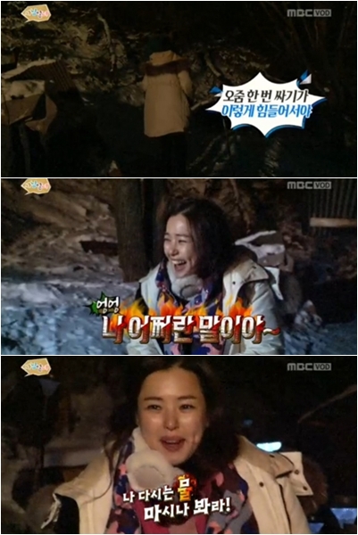 이하늬는 소변이 급해 서장훈과 화장실 물색에 나섰지만 좀처럼 찾기 어려웠다. 아하늬는 “오줌 한 번 싸기가 이렇게 힘들어서야”라며 버럭 했다. 서장훈이 적당한 장소를 찾아내 이하늬는 눈 쌓인 밭 뒤편에서 노상방뇨를 했다. 이하늬는 “다시는 물마시나 봐라”라며 소리쳐 웃음을 자아냈다.