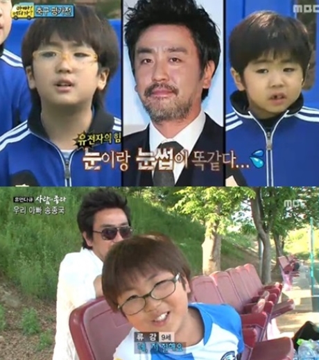 송종국 축구교실에 속한 류승룡 아들 9살 류강과 6살 류건은 눈과 눈썹이 아빠 류승룡과 닮은 붕어빵 외모를 보였다.