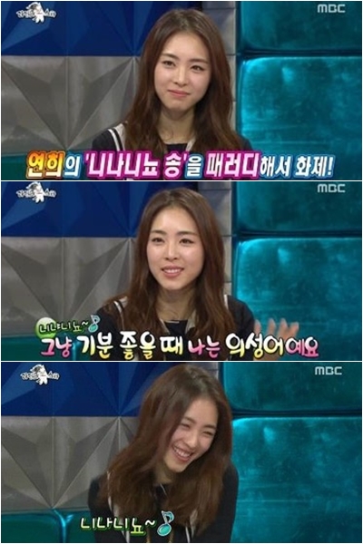 이날 이연희는 “존박의 니냐니뇨송 패러디를 본 적이 있느냐”는 MC들의 질문에 “이건 내가 하는 건데?라는 생각을 했다”고 답했다.