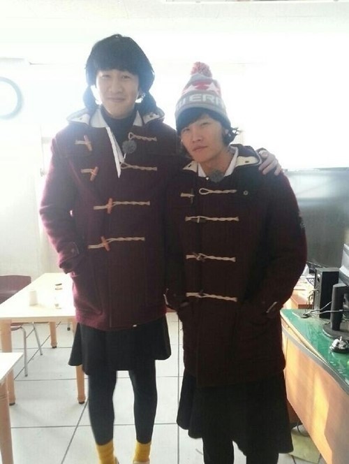사진에는 이광수와 김종국이 가발을 쓰고 교복을 착용한 채 여고생으로 변신한 모습이 담겨 있다. 이광수 김종국은 여고생으로 변신한 뒤 수줍은 듯한 엷은 미소를 짓고 있어 웃음을 자아낸다.