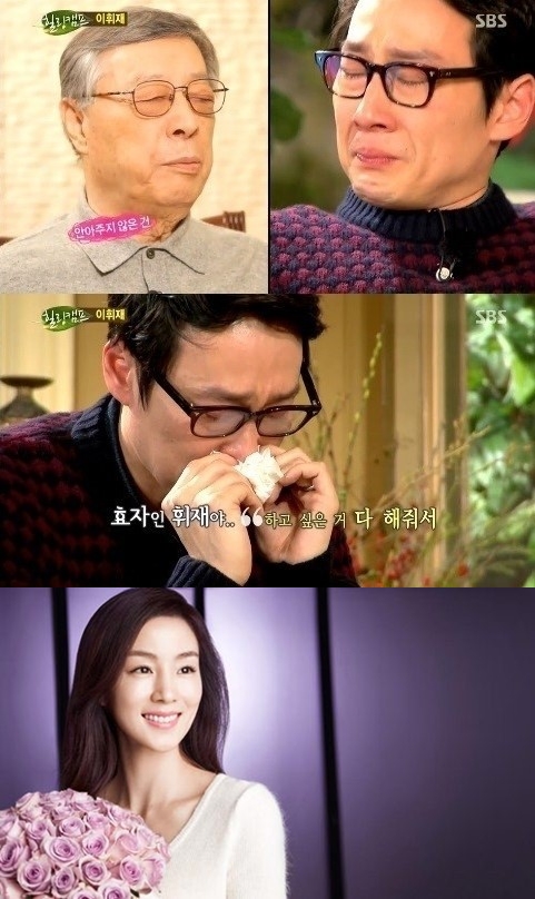 13일 방송된 SBS ‘힐링캠프 기쁘지 아니한가’에 출연한 이휘재는 미모의 아내 문정원 씨와의 러브스토리를 공개하는 한편 아버지의 영상편지에 폭풍 눈물을 흘리는 모습을 보였다.