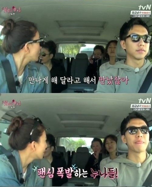 이날 이승기는 누나들과 함께 떠나는 도로 여행에서 김동률의 ‘출발’을 틀었고 윤여정 김자옥 김희애 이미연은 노래에 흠뻑 빠져드는 모습을 보였다.