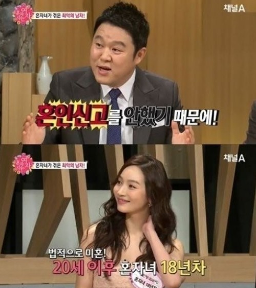 이민영은 배우 이찬과 결혼 10일만에 파경을 맞아 충격을 줬다. 이에 MC 김구라는 “우리가 알기로는 (이민영이) 결혼한 걸로 알고 있는데 혼자 산지 18년이 됐다고 하더라. 얘기를 해봤더니 혼인신고를 안 해 법적으로 혼자 산지 18년차라고 자신을 소개한 것 같다”고 말했다.