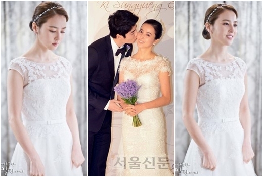 사진 속 한혜진은 어깨 부분이 레이스로 처리된 웨딩드레스를 입고 청초한 미모를 뽐내고 있다. 극중 유부녀인 나은진 캐릭터를 위해 수수한 의상을 주로 입었던 한혜진의 웨딩드레스 자태는 그간 보여주지 못했던 새로운 매력을 보여줘 시선을 사로잡았다.