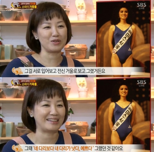 이어 “외모 중에 김성령보다 낫다고 생각하는 부분이 어디인가”라는 질문에 김성진 씨는 “성령이가 미스코리아에 나갈 때는 지정 수영복이 있었다. 그걸 서로 입어보고 전신 거울로 비교했다. 그 때 ‘네 다리 보다는 내 다리가 낫다. 예쁘다’고 했던 것 같다”라고 답해 눈길을 끌었다.