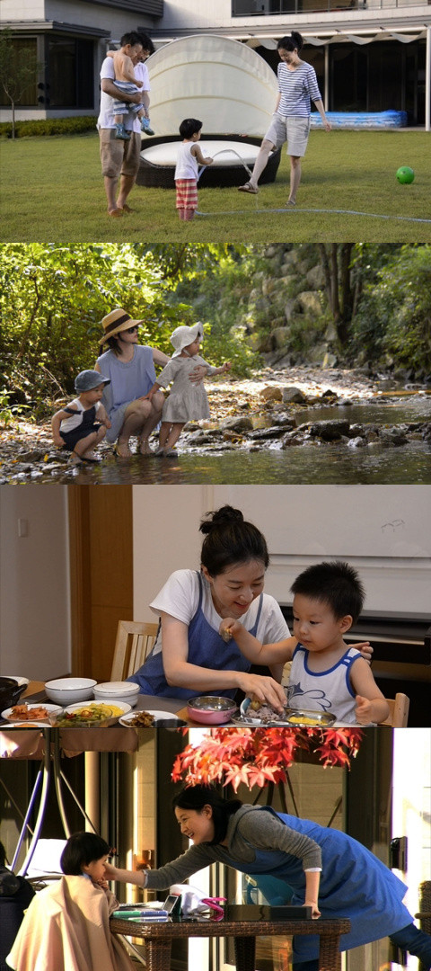공개된 사진 속 이영애는 남편과 쌍둥이 아이들과 함께 단란한 일상을 보여주고 있다. 이영애는 아들에게 손수 밥을 먹여주는가 하면 딸의 머리카락을 손수 다듬어주고 아이들과 물놀이를 즐기는 등 소탈한 모습이다.