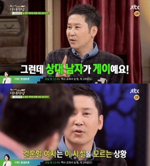 이날 방송에서 MC 신동엽은 소개팅 주선자로부터 남자친구에 대한 충격적인 사실을 들었다는 사연에 대해 이야기하던 도중, “게이인 것을 숨기고 결혼해서 잘 살고 있는 지인이 있다”고 털어놨다.