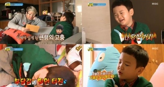 윤민수 아들 윤후가 26일 첫 방송된 MBC 예능프로그램 ‘일밤-아빠! 어디가?’ 시즌 2번째 이야기에서 맏형이 되었다는 소식에 부담감을 나타냈다.
