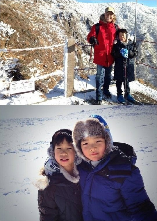 공개된 ‘김민국 성준 인증샷’에는 눈이 쌓인 한라산을 배경으로 김성주가 아들 민국이와 함께 나란히 서서 환하게 웃고 있다.