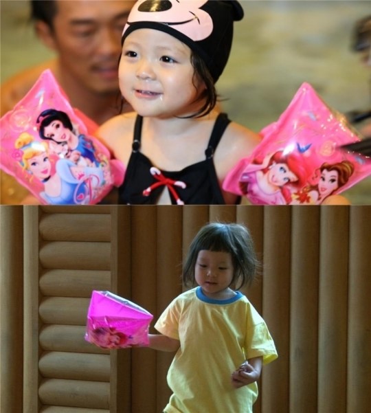 아빠 추성훈에게 물에 뜨는 법과 발장구치는 법을 배운 추사랑은 미니마우스 전신 수영복을 입고 ‘미니마우추’로 변신해 수영연습을 하며 즐거워했다.