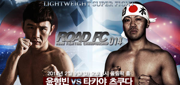 윤형빈은 9일 오후 8시 서울 송파구 방이동 올림픽공원 올림픽홀에서 열린 ‘로드 FC 2014 윤형빈vs타카야 츠쿠다’ 경기에서 1라운드 KO승을 거뒀다. 윤형빈은 타카야 츠쿠다와의 경기에서 경기 초반 치열한 기싸움을 벌였지만 ‘한방’으로 타카야 츠쿠다를 제압했다.