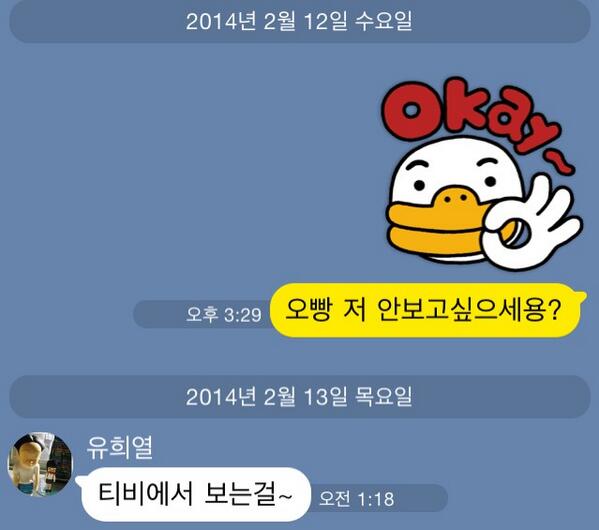 내용을 보면, 박지선은 유희열에게 ‘오빵 저 안보고 싶으세용?’이라고 묻는다. 그러자 유희열은 ‘티비에서 보는 걸~’이라고 재치있게 대답했다.