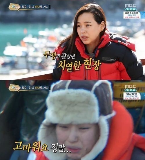 즐겁게 조업을 하던 이하늬는 “다부지다 다부져”라고 자신을 칭찬하는 엄마의 칭찬을 듣자 “아빠 엄마는 맨날 이거 하시는데 뭐. 나는 진짜 눈물 날라 칸다”라며 울컥 하는 모습을 보였다.