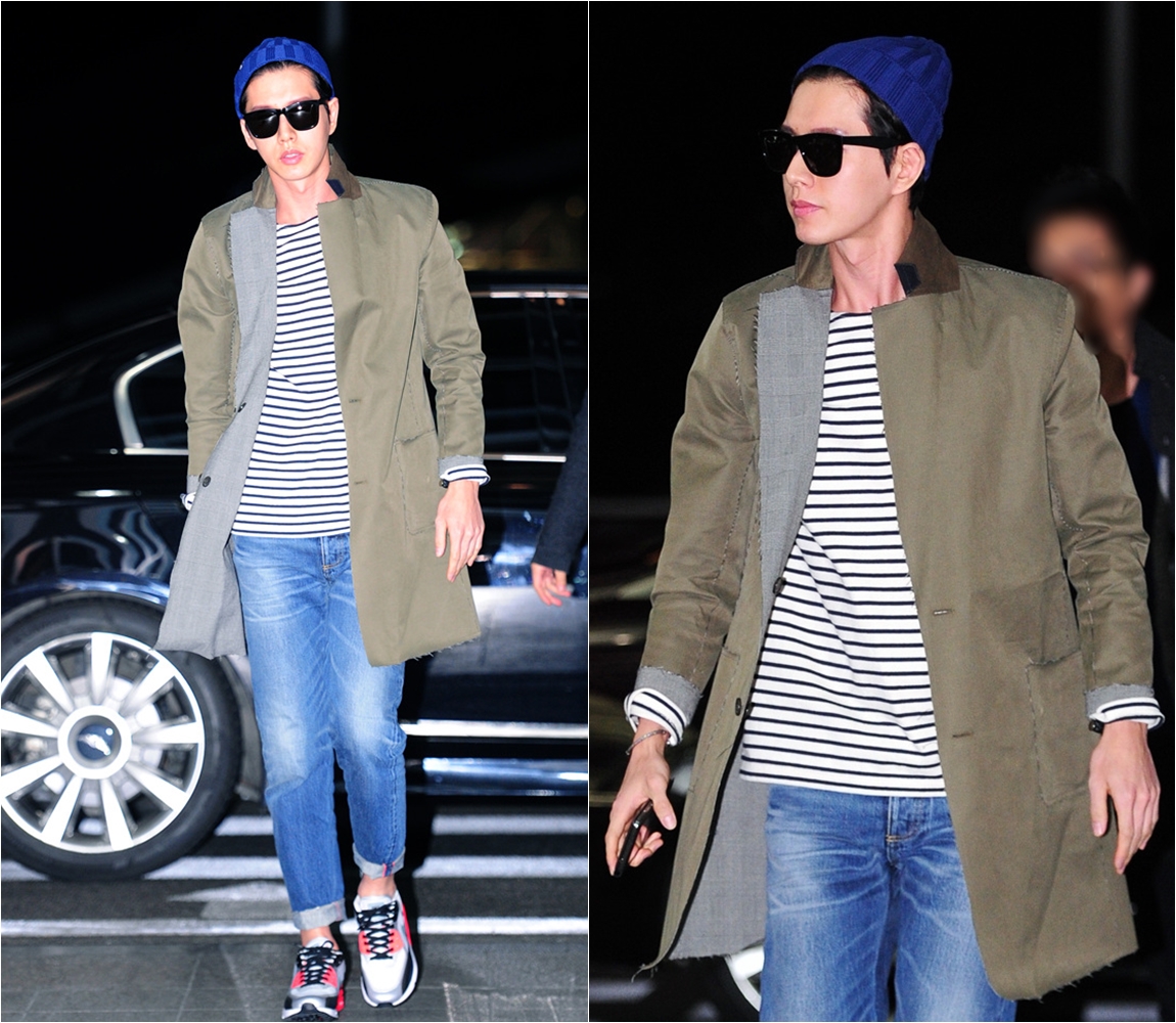 배우 박해진은 드라마에서 보여주던 댄디한 모습과는 상반된 스타일로 공항에 등장해 눈길을 끌었다. 진한 색상의 청바지를 센스 있게 롤업해 입은 박해진은 카키색 롱코트를 걸쳐 우월한 기럭지를 뽐냈다. 스트라이프 티셔츠와 파란색 비니를 매치해 이지룩을 완성시키며 공항을 런웨이로 만드는 모델 포스를 드러냈다.
