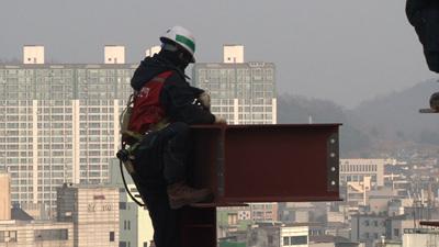 강원도 원주에 있는 건축 증축 현장. 건물의 뼈대를 세우는 철골 구조물 설치 작업이 한창이다. 철골 빔 한 개의 무게는 평균 1t. 이 철골들이 만여개가 모여야 한 건물의 버팀목이 된다. 철골의 폭은 작업자들의 발 폭보다도 좁다. 그래도 발 디딜 곳만 있으면 능수능란하게 오르내리고, 철골 위에 엎드려 볼트를 조이는 작업까지 해낸다. 공중에서 떨어지는 작은 볼트 하나조차 대형사고를 유발할 수 있기 때문에 작업반 사람들은 몸과 마음에 긴장을 늦출 수 없다.