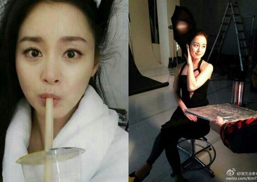 배우 김태희는 20일 오후 중국판 트위터인 웨이보에 “지면 촬영 중이에요. 헤어 변형하는 동안 버블티로 당 보충하는 중. 완전 맛있어요”라는 글과 함께 촬영 현장 사진을 공개했다.